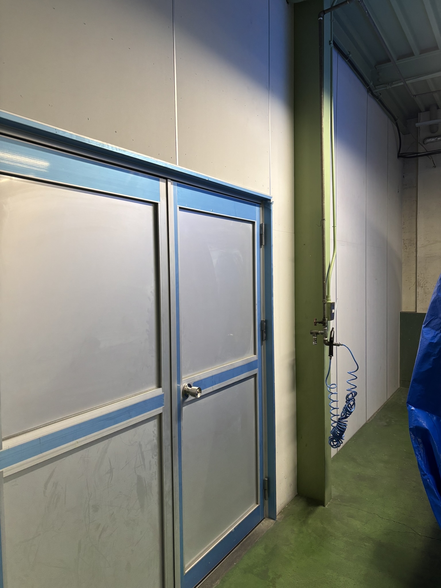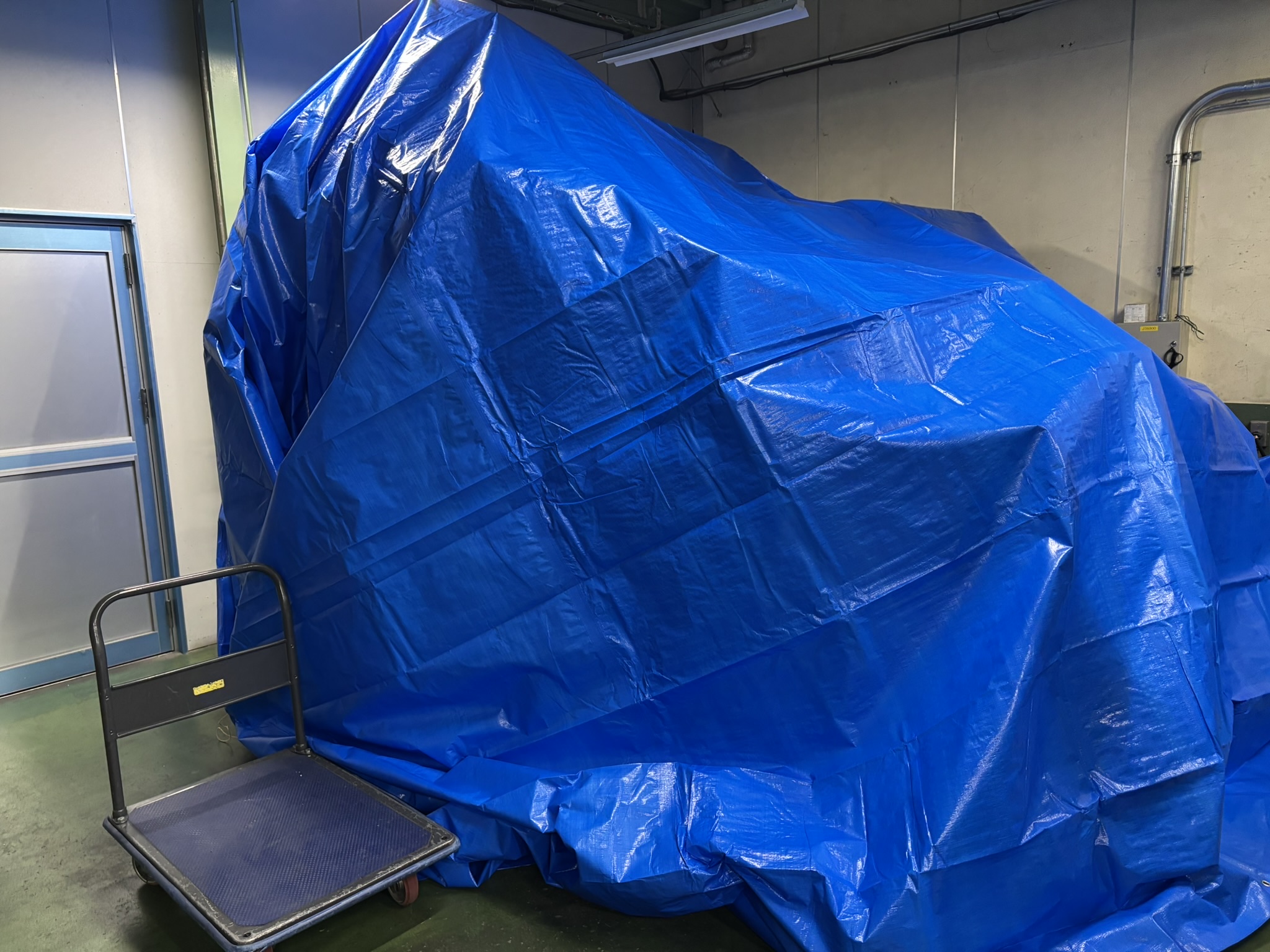隣のブロー機も ブルーシートで養生しました。