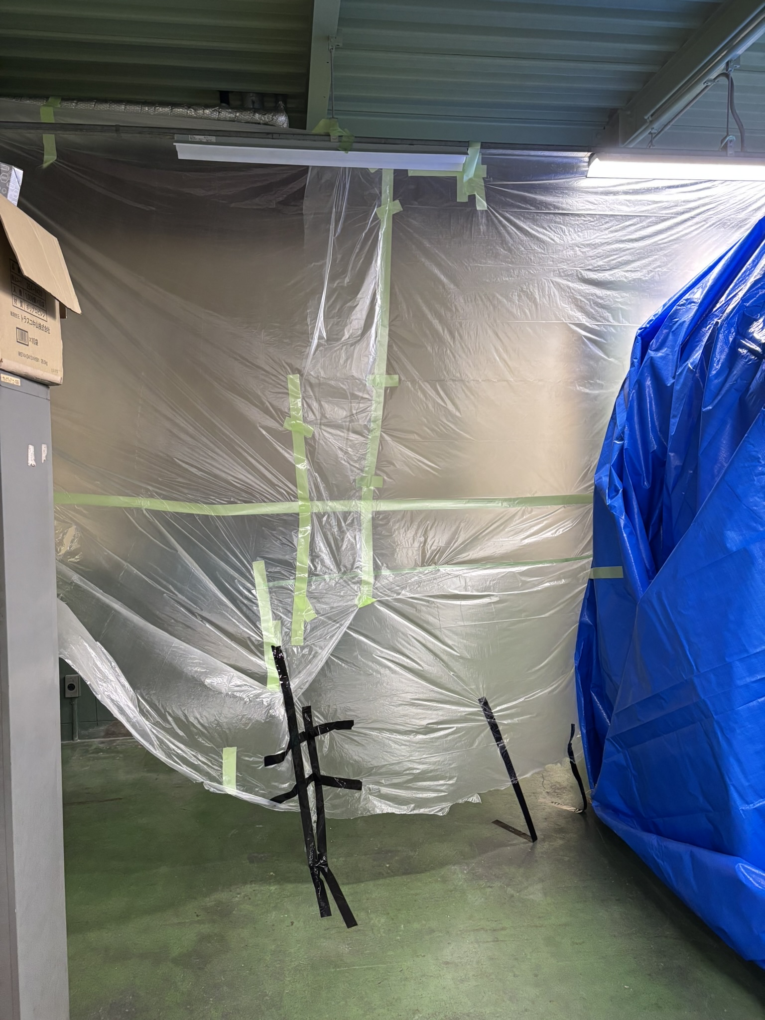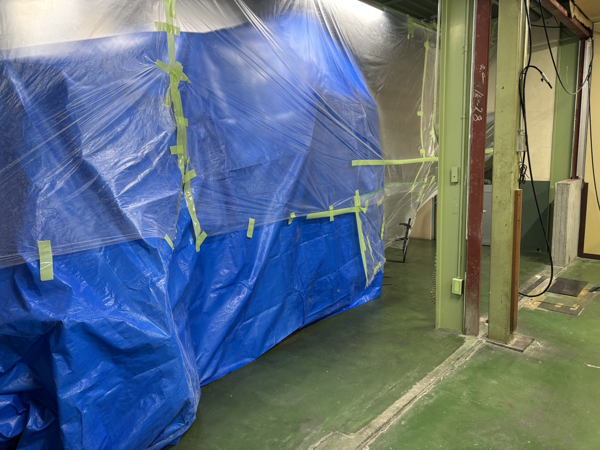 昨日 ブロー成形機の コーナーの 壁の解体工事が終わった