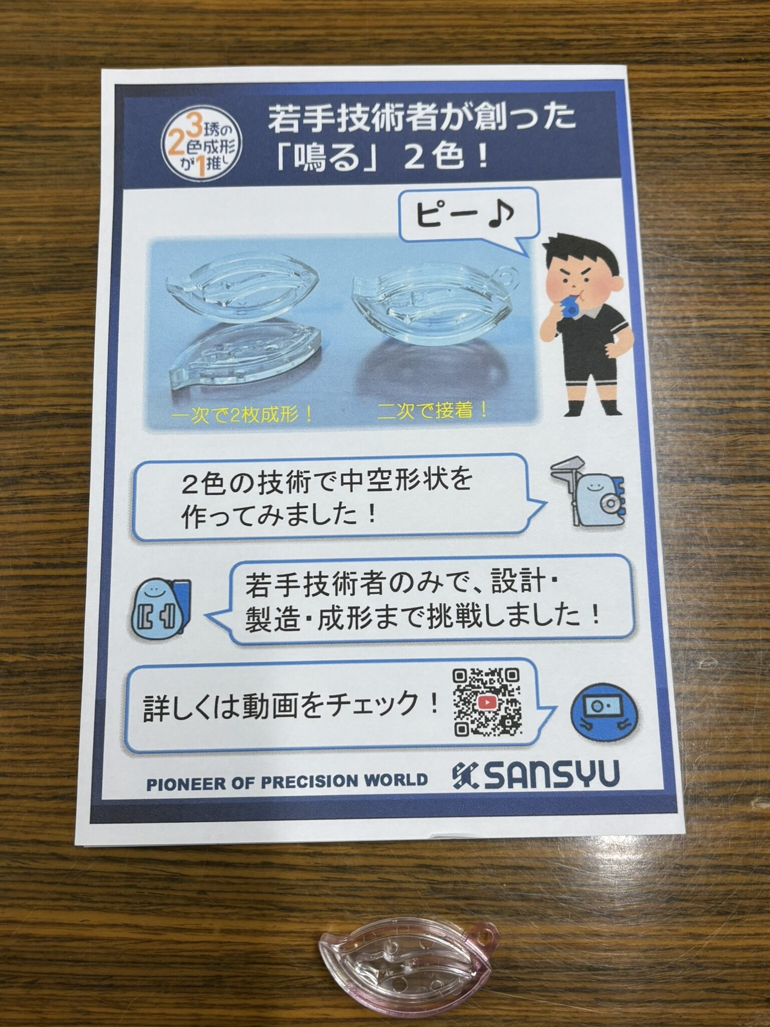 若手がインターモールドで 自分たちの力で作った金型で成形した 中空射出製品もみせていただいた