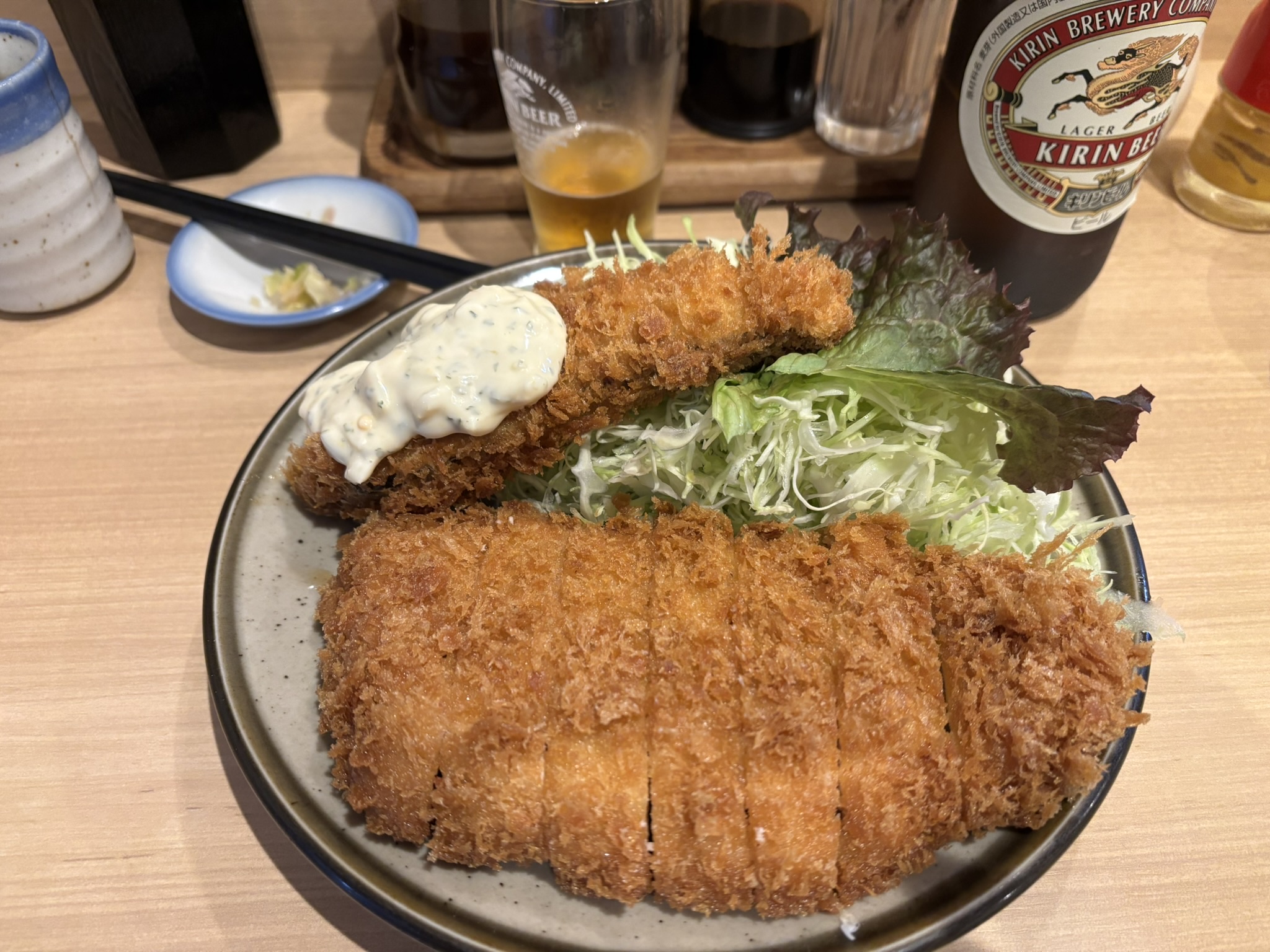 とんかつ藤芳さんの とんかつに タルタルかけ白身魚のフライを トッピングで、、、